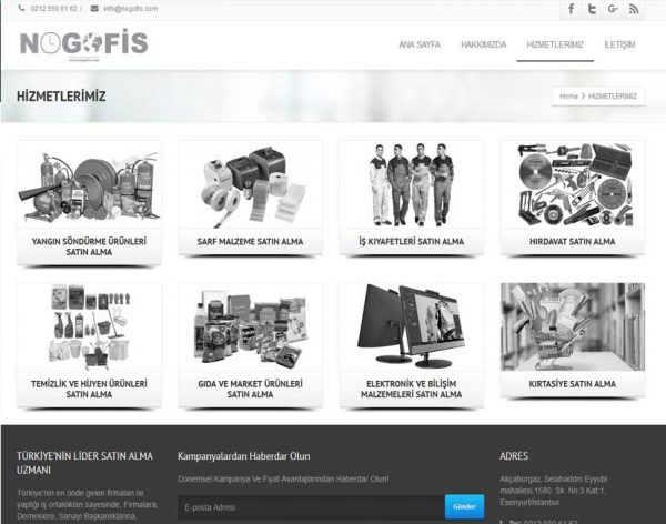 https://www.nogofis.com/adresinde yayın yapan web sitesinin özgün içerik ve metinlerinin yanı sıra grafik tasarımları tarafımızca yapılmış olup potansiyel müşterilere ulaşılması sağlanmıştır Nog Ofis’in alan adı ve barındırma ve yedekleme işlemlerini de biz yapmaktayız